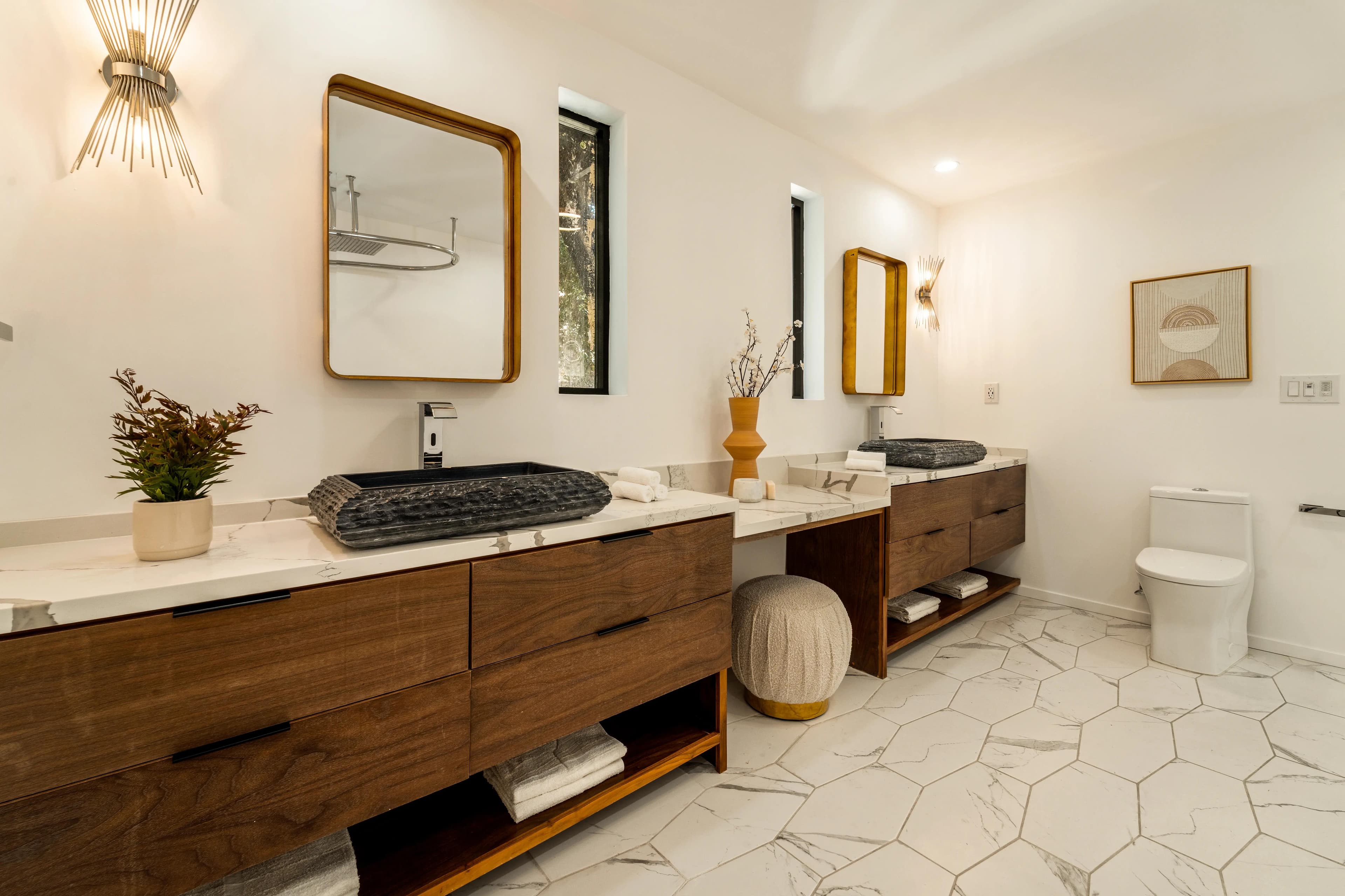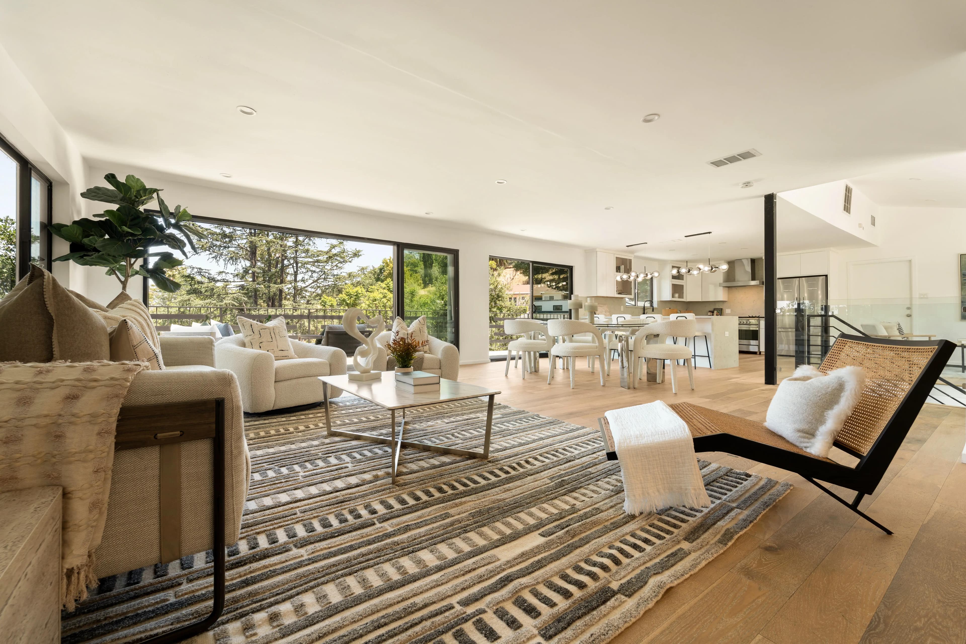 Experience the best of indoor-outdoor living in this stunningly remodeled home, designed for the optimal southern California living. With an emphasis on flexible indoor-outdoor spaces, natural light, and seamless transitions, this property offers a unique urban oasis overlooking the Angeleno treetops and the cityscape. The main level is an entertainer's dream, featuring an open-concept living area and a state-of-the-art kitchen with premium appliances. This entire space extends gracefully to a spacious deck, perfect for gatherings or quiet moments. Venture down to discover three well-appointed bedrooms. The primary suite is a serene escape, complete with a cozy lounge area, a luxurious en-suite bathroom with dual vanity sinks, and a walk-in closet. This floor also includes a dedicated office and an additional ensuite bedroom featuring a standalone tub and shower. The lower level provides even more versatility with a central lounging area and two additional en-suite bedrooms, currently configured as a home gym and a charming kids' room. Outdoor living is enjoyed at its finest with a welcoming front porch, expansive decks on every level, and a paved side area, offering multiple distinct spaces for relaxation and recreation. Ideally situated in the highly rated Carpenter Community Charter School district, and just minutes from the vibrant array of shops, cafes, and restaurants on Ventura Boulevard, this home truly delivers on location and lifestyle.