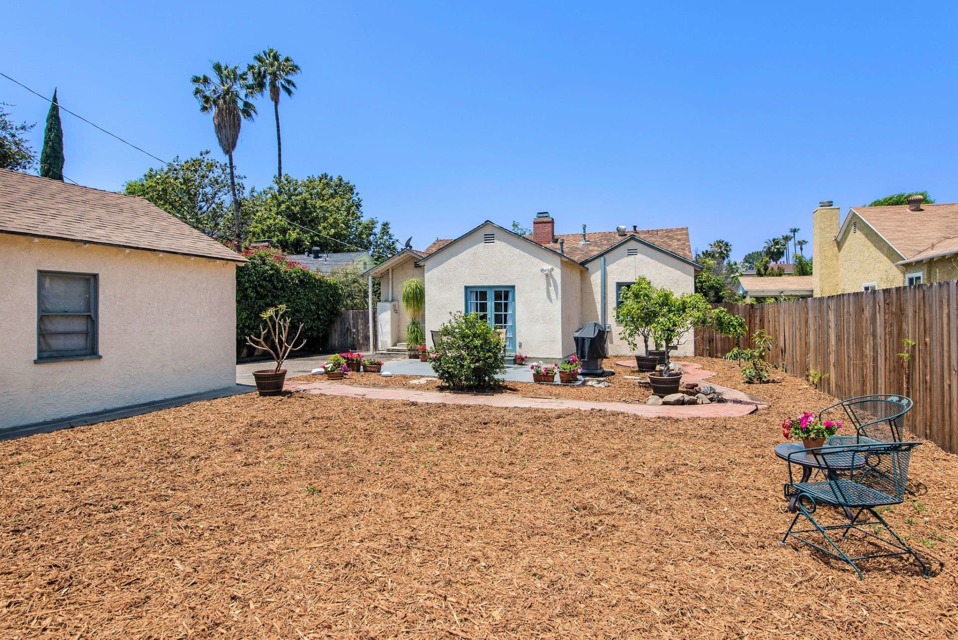 Located is a desirable pocket of Valley Village, this 1940’s traditional has endless potential. Filled with light, original charm and hardwood floors throughout, this home has an ideal floor plan. Enter into the formal living room with coved ceilings and fireplace that flows beautifully into the dining room. The bright and cheerful kitchen, with access to the laundry room and backyard, has stainless steel appliances. The kitchen is open to a bonus area that could be used as an office, play room or family room. Set apart from the other two bedrooms, the master has French doors to the yard, ample closets and an en-suite bath. The large, private backyard with patio and new fencing is just waiting for a pool. Separate garage for storage (or possible ADU) is set back on the ample lot. Located near the LA Orange Line & Metro station allows easy access to downtown & the west end of the San Fernando Valley. Close to Valley Village Park, shopping, restaurants & the NoHo Art’s District.