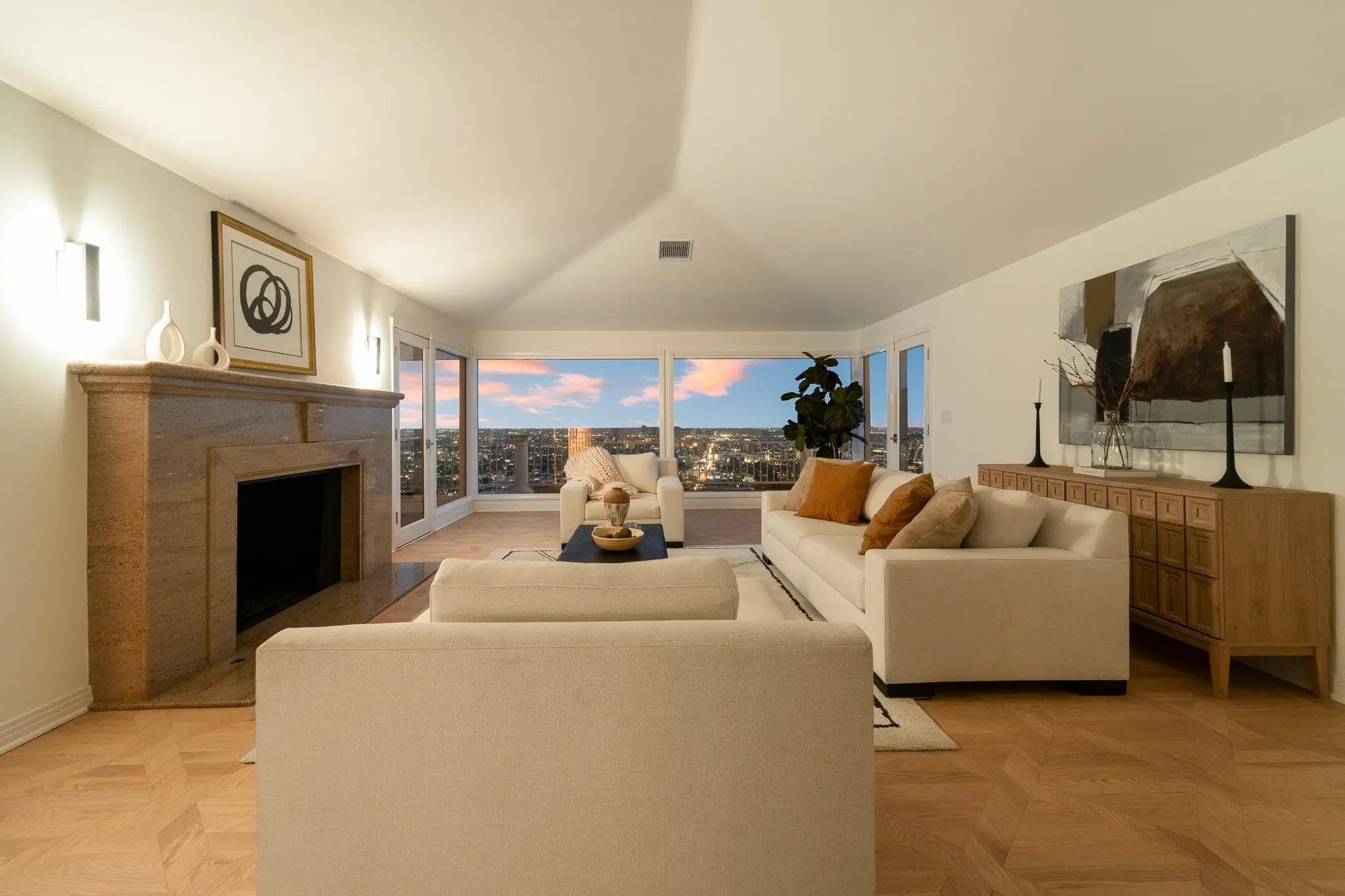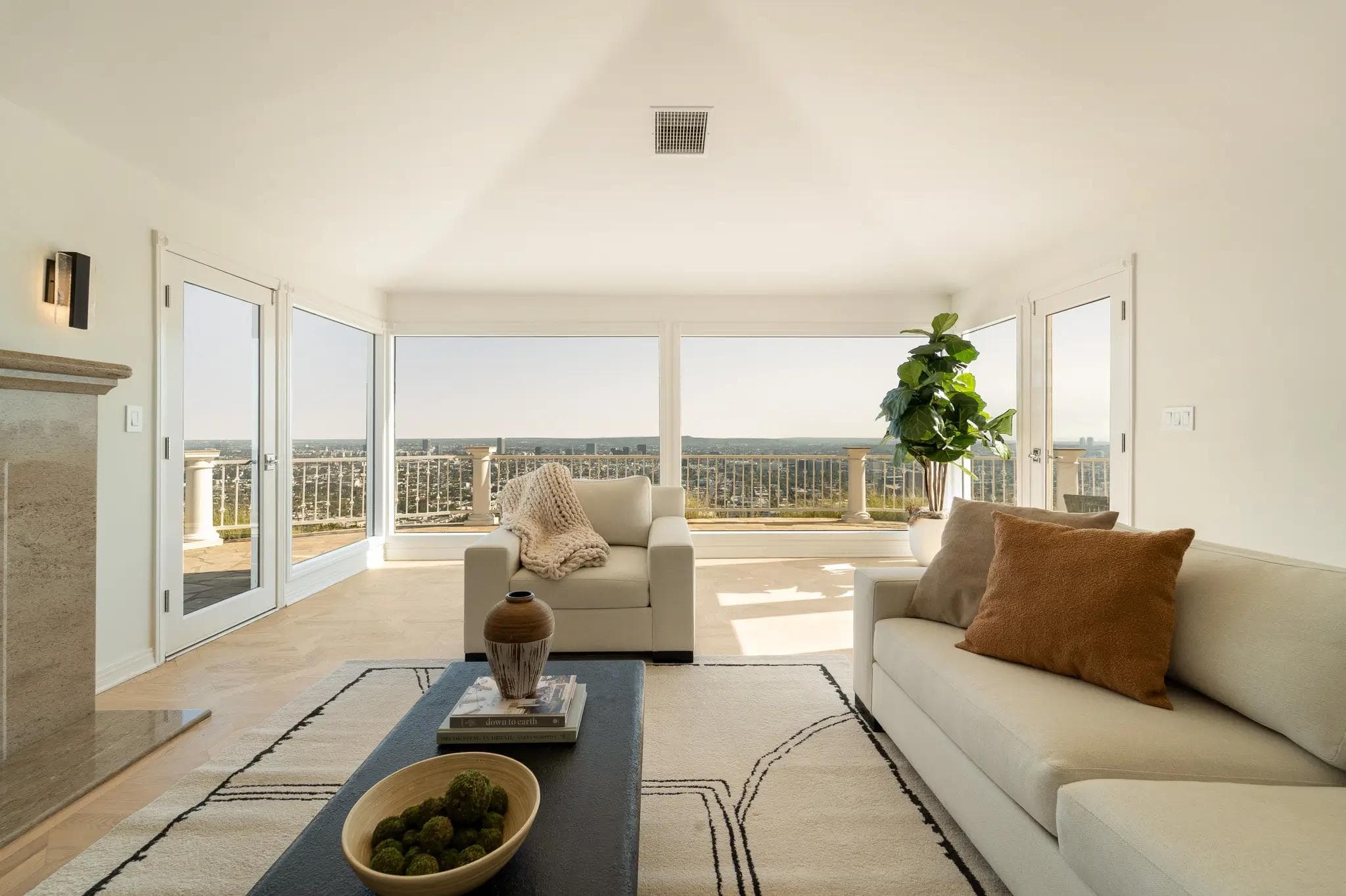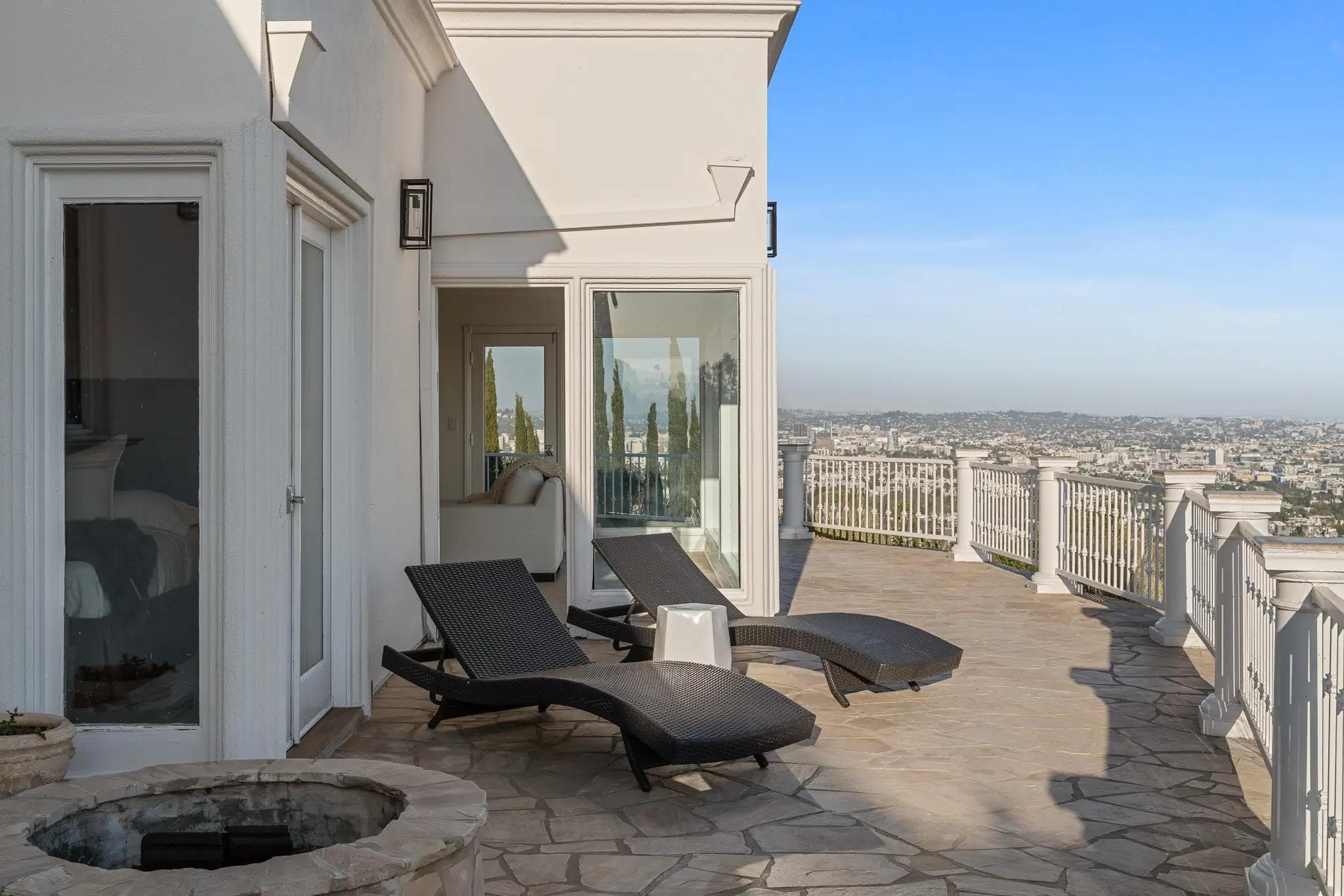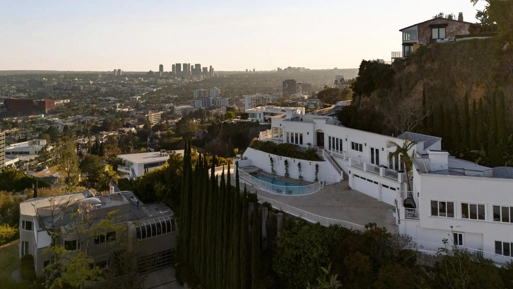 Presenting a remarkable opportunity to own a spectacular view estate perched above the famed Sunset Strip with incredible 270-degree views, among the very best in LA, that stretch from downtown to the Pacific. Move in today and refresh over time or fully redevelop, remodel, reimagine, or build anew. The possibilities are endless in this coveted, iconic locale! Up a gated, private driveway, the property wraps around its own promontory to provide dazzling vistas from multiple vantage points, balconies, patios, and nearly every room. Enjoy the pleasure of optimal indoor/outdoor flow from the foyer, bar/salon, formal living room, dining room, and bedrooms, each opening to a vast wraparound terrace. Dine-al fresco, entertain under the stars, or lounge poolside amidst striking panoramas that must be seen to be believed. The primary suite includes a bathroom with jetted tub, separate glass shower, and dual-sink vanity, giving way to a bonus living area, gym, or dance studio with skylights and fireplace. The kitchen is replete with custom cabinetry and cooktop with hood. A nearby breakfast room connects to the guest wing which was previously a separate structure and has been adjoined to the main house to create a shared lounge with patio access. The guest house offers its own separate patio, fireplace, wet bar, dining area, and kitchen, perfect for an end-user who wants to refresh and/or utilize the space for ADU income potential or short-term vacation rentals (buyer to verify local requirements). Welcome to an incredible location just moments to the area's very best shopping, fine dining, entertainment, nightlife, and so much more.